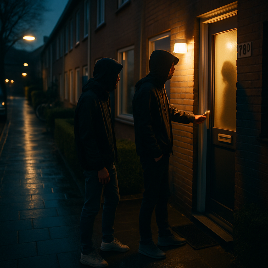 In de stille uren van de nacht ging aan de Rubensstraat in Ede een deurbel, gevolgd door een bedreiging: twee…